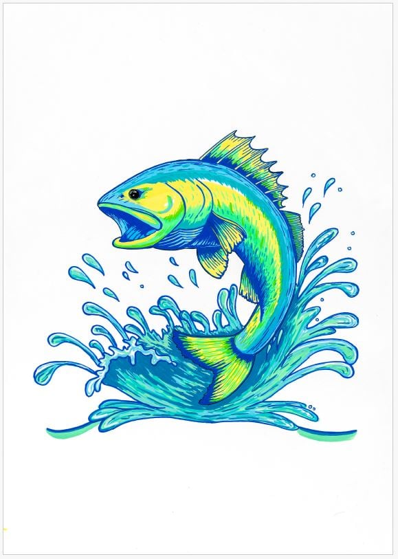 Ce dessin de poisson capture l’instant où le poisson saute hors de l’eau, défiant le courant et embrassant l’inconnu. Comme en capoeira, ce mouvement symbolise l’agilité, la liberté et la capacité à saisir le bon moment pour agir. C’est un hommage à la fluidité et à la spontanéité de cet art.