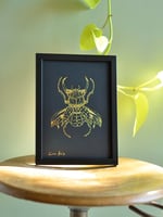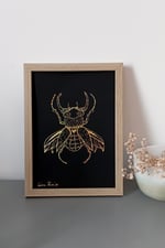 With its wings barely unfolded, the golden beetle is about to leave the earth and soar into the unknown. A symbol of transformation and renewal, it embodies the hidden strength in every flight, the light that pierces the darkness.